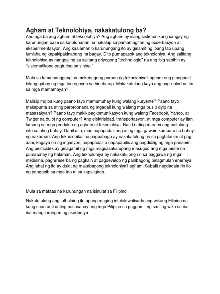 Ay lawas ng mga kasangkapanmakinama- teryalespamamaraan at prose- song ginagamit upang magbu- nga ng gamit at serbisyo upang matugunan ang pangangailangan ng tao. 1996 sa mga taong 1980 at 1990 lumaganap ang kasaganahan ng teknolohiya. Siyensiyang Panlipunan at Sining - Mga Disiplina sa Larangan ng Siyensiya at Teknolohiya - Pagsulat at Metodo ng Pananaliksik sa Siyensiya at Teknolohiya DMGCahambing.