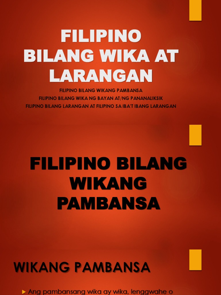 Ano ang kahalagahan ng wikang filipino sa larangan ng edukasyon. Ano ang kahalagahan ng sistema ng pagsulat sa isang pamayanan. Ukol sa layunin ng komunikasyon at pagtuturo ang mga wikang opisyal ng Pilipinas ay Filipino at hangga t walang ibang itinatadhana ang batas Ingles. Ang parte ng wikang ito ay may malalim na mga kahulugan o di kayay.