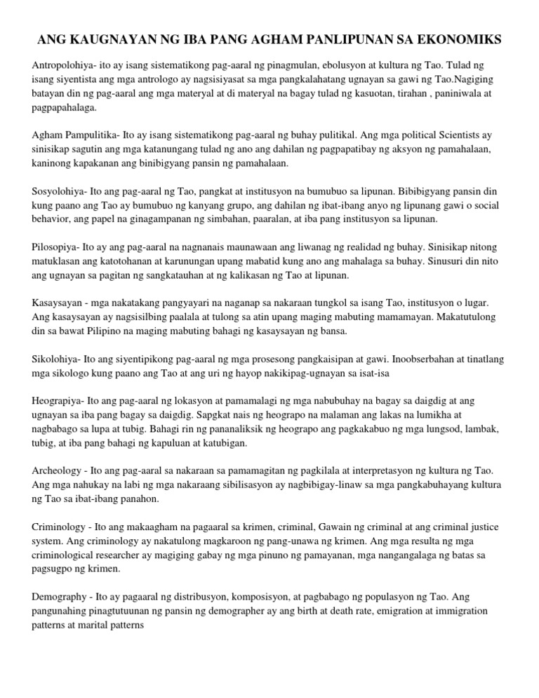 Kaugnayan Ng Iba Pang Agham Panlipunan Sa Ekonomiks Pdf