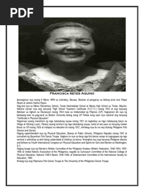 Marami siyang napanalunang medalya sa larangan ng boksing na internasyonal. Francisca Reyes Aquino The Philippine Folk Dances Rafael Paeng Nepomuceno. Isa pang kilalang Pilipino sa larangan ng musika si Nicanor Abelardo.