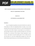 Epekto ng social media at internet sa mga estudyante Sa panahon ngayon naging parte na ng ating pang araw-araw na pamumuhay ang internet lalo na sa mga kabataan at mga estudyante. Habang kailangang panatilihing suriin ng mga magulang ang kagalingan ng kanilang ward ito ay isang pag-aalala sa moral at etikal na dapat ding alagaan ng mga platform ng social media. Habang dumarami ang gumagamit ng social media ay mapapansin na may mabuti at masamang idinudulot ang paggamit nito.