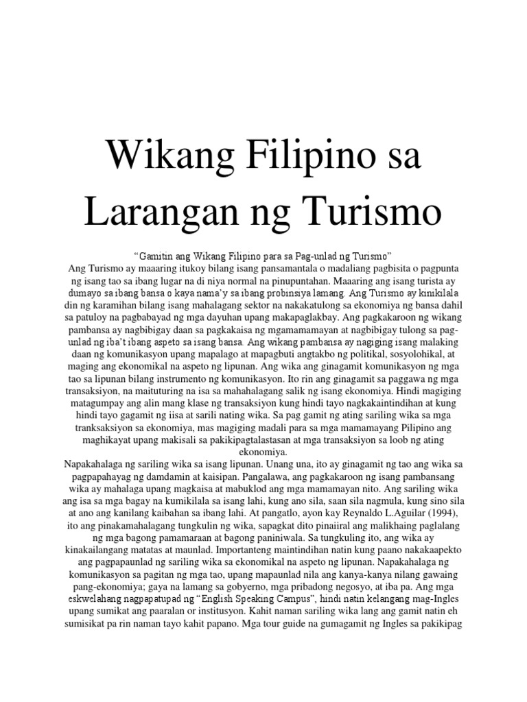 Wikang filipino sa larangan ng turismo. KALAGAYAN NG WIKANG FILIPINO SA MAKABAGONG PANAHON _____ Isang Pagbabalak na Inihanay kay. Wikang Filipino sa Larangan ng Turismo. Isa rin sa maaari nating gawin ay ang makilahok sa mga.