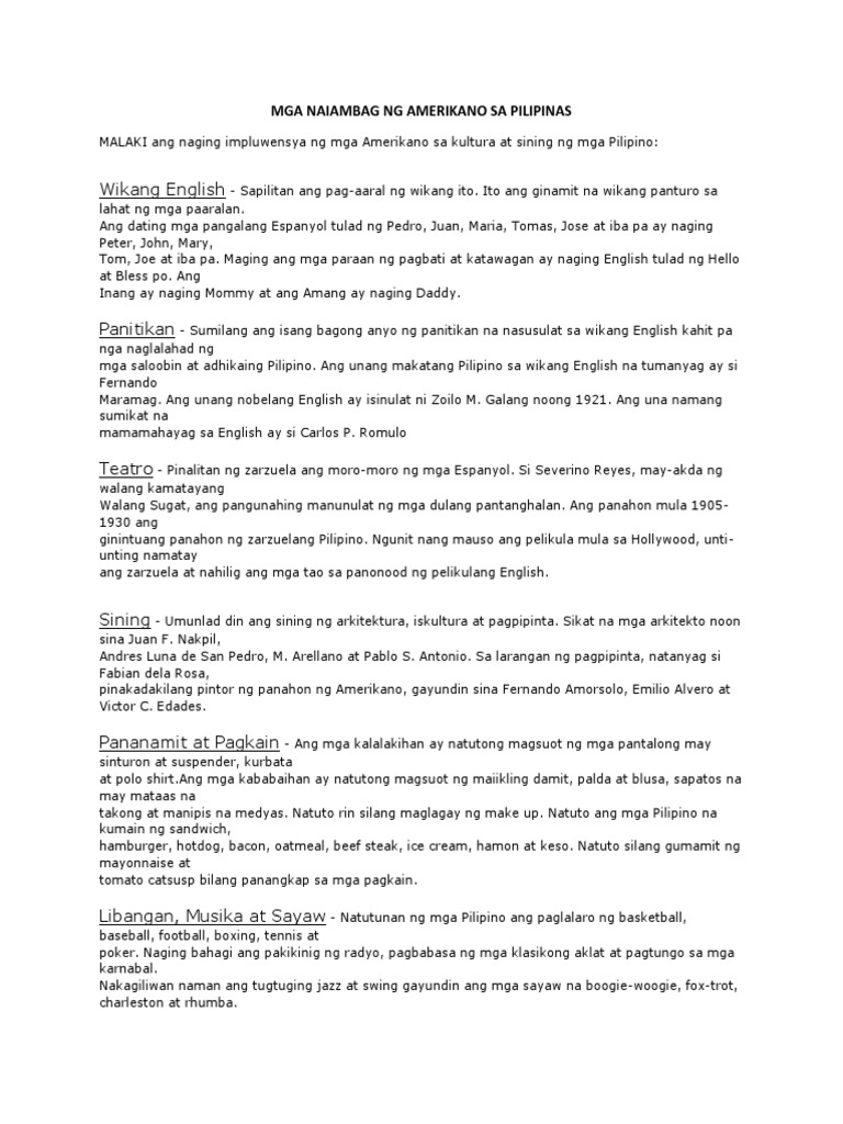 Mga Naiambag Ng Amerikano Sa Pilipinas Pdf