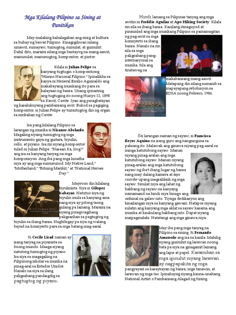 Mga Kilalang Pilipino Sa Sining At Panitikan Pdf