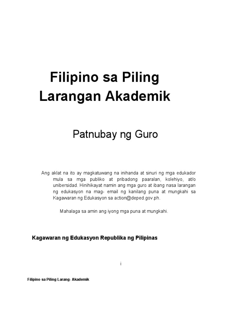 Filipino Sa Piling Larang Akademik Patnubay Ng Guro Pdf