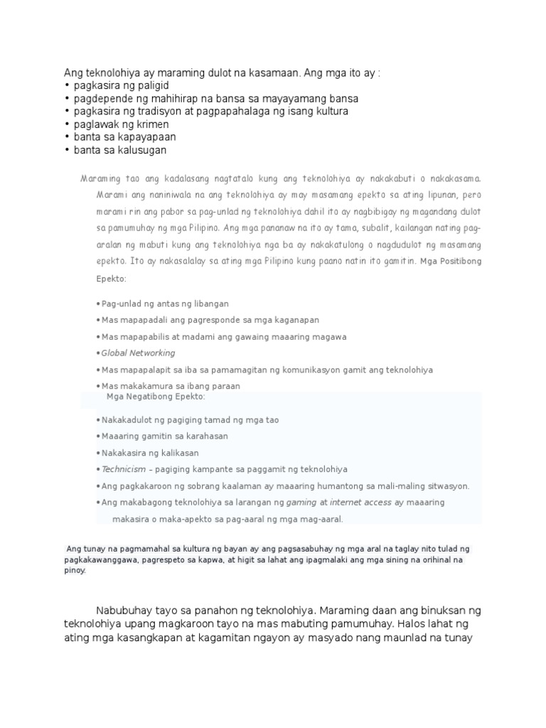 Ang Teknolohiya Ay Maraming Dulot Na Kasamaan Pdf